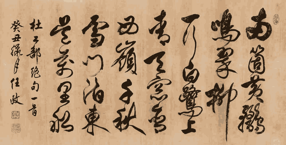 落款:杜工部绝句一首,癸丑腊月,任政。