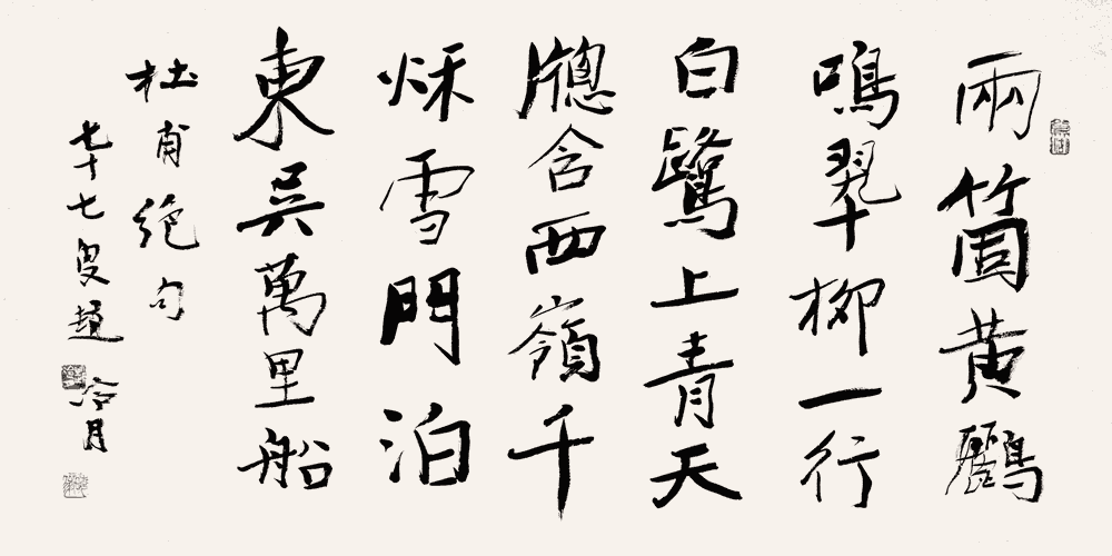 落款:杜甫绝句,七十七叟赵冷月。